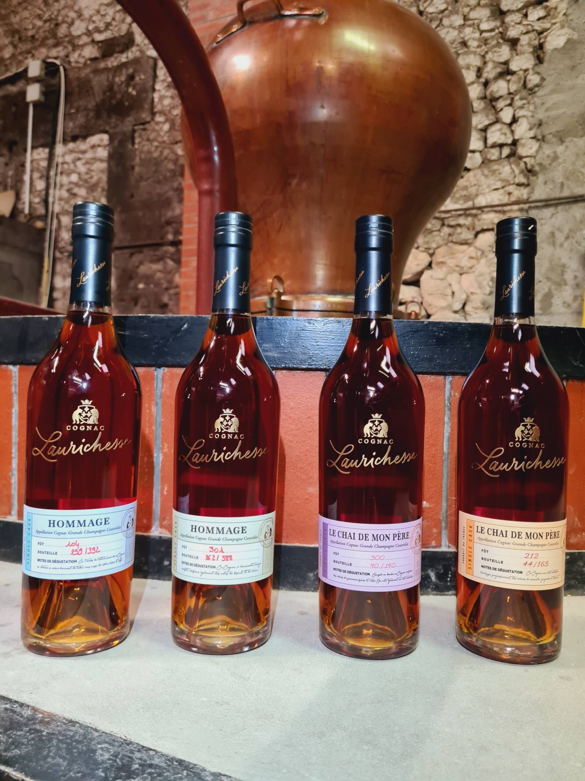 La seconde signature de la maison est incarnée par la gamme Laurichesse – Le Chai de mon Père, une collection de cognacs brut de fût. Ces eaux-de-vie sont mises en bouteille sans réduction, directement à leur degré naturel.